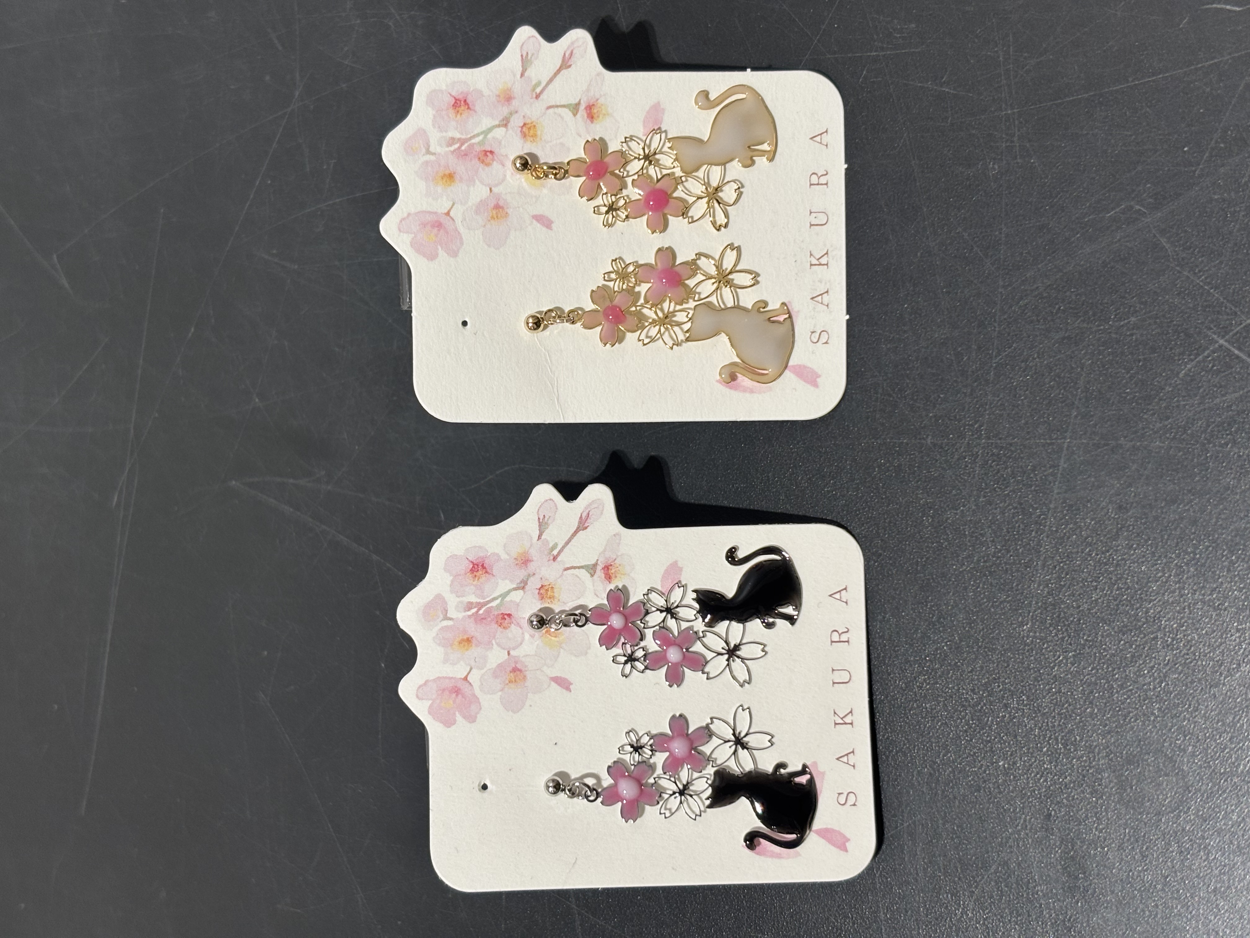 - 新作⭐︎ 桜白ねこ桜黒ねこピアス⭐︎