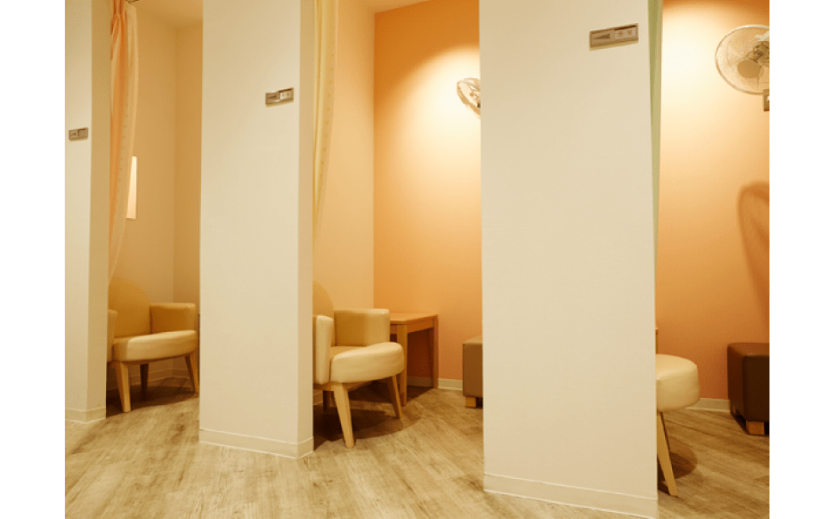 授乳室を各フロアにご用意しています。各授乳室には、調乳用給湯器、紙オムツ自動販売機(1F、2Fのみ)、紙パックジュース自動販売機(1F、2Fのみ)、電子レンジ(1F、3Fのみ)、を設置しています。さらに完全個室のナーシングルーム「mamaro」もご用意しております。