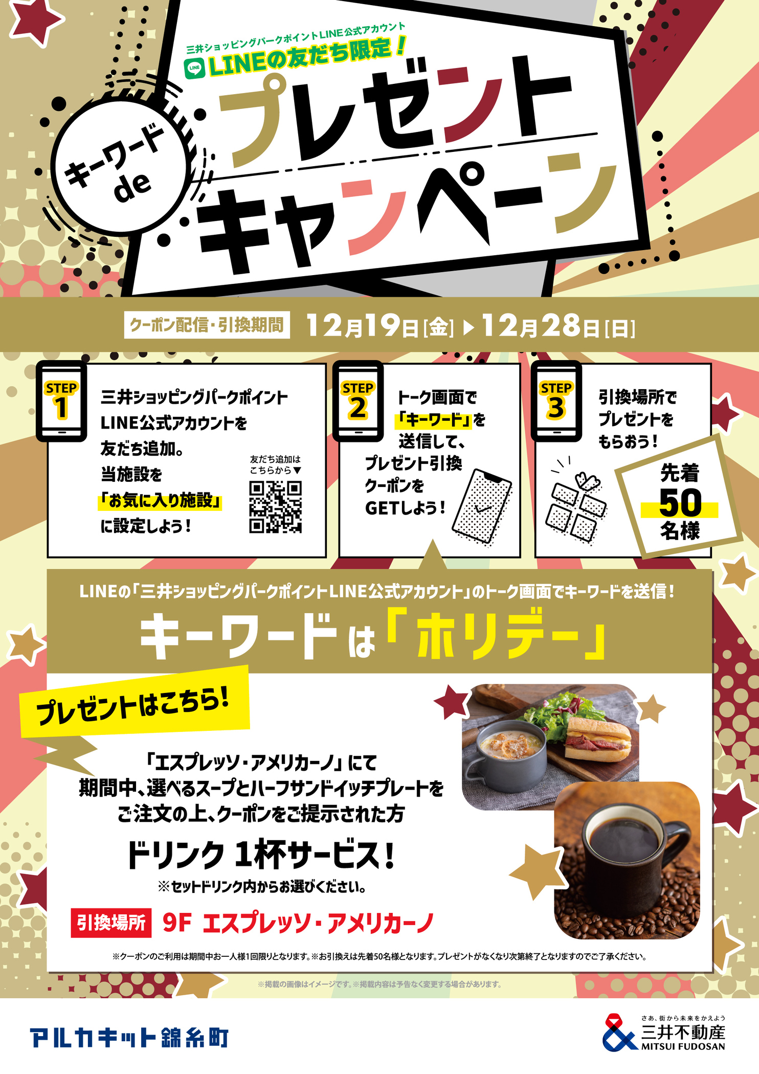 12月19日(星期五)至12月28日(星期日)在此期间,我们将举办关键词赠送活动。