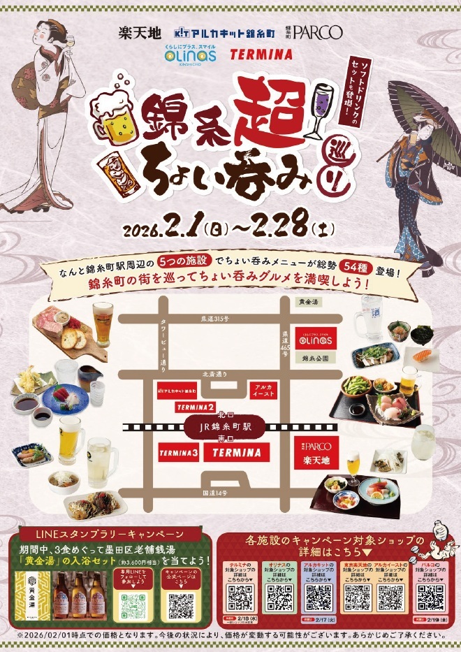 限时推出“小饮酒套餐”,涵盖日本54家公司和6个设施,包括金四町终点站、大利纳金四町、乐天致、金四町PARCO和Arcakit Kinshicho,以及54个商店。