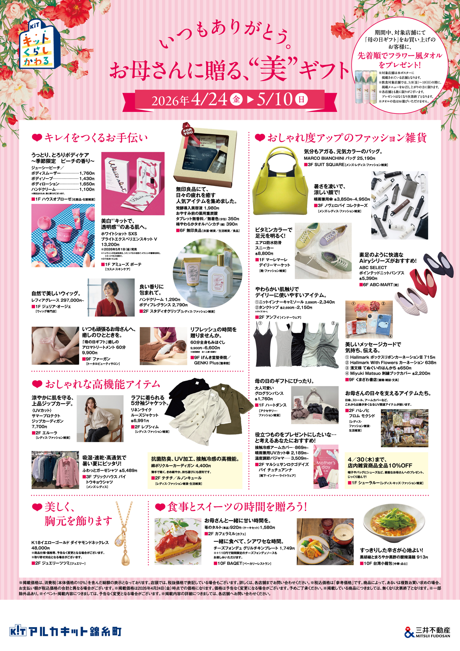 Arcakit Kinshicho将于 4 月 24 日(星期五)至 5 月 10 日(星期日)举办“母亲节美容礼品”活动!