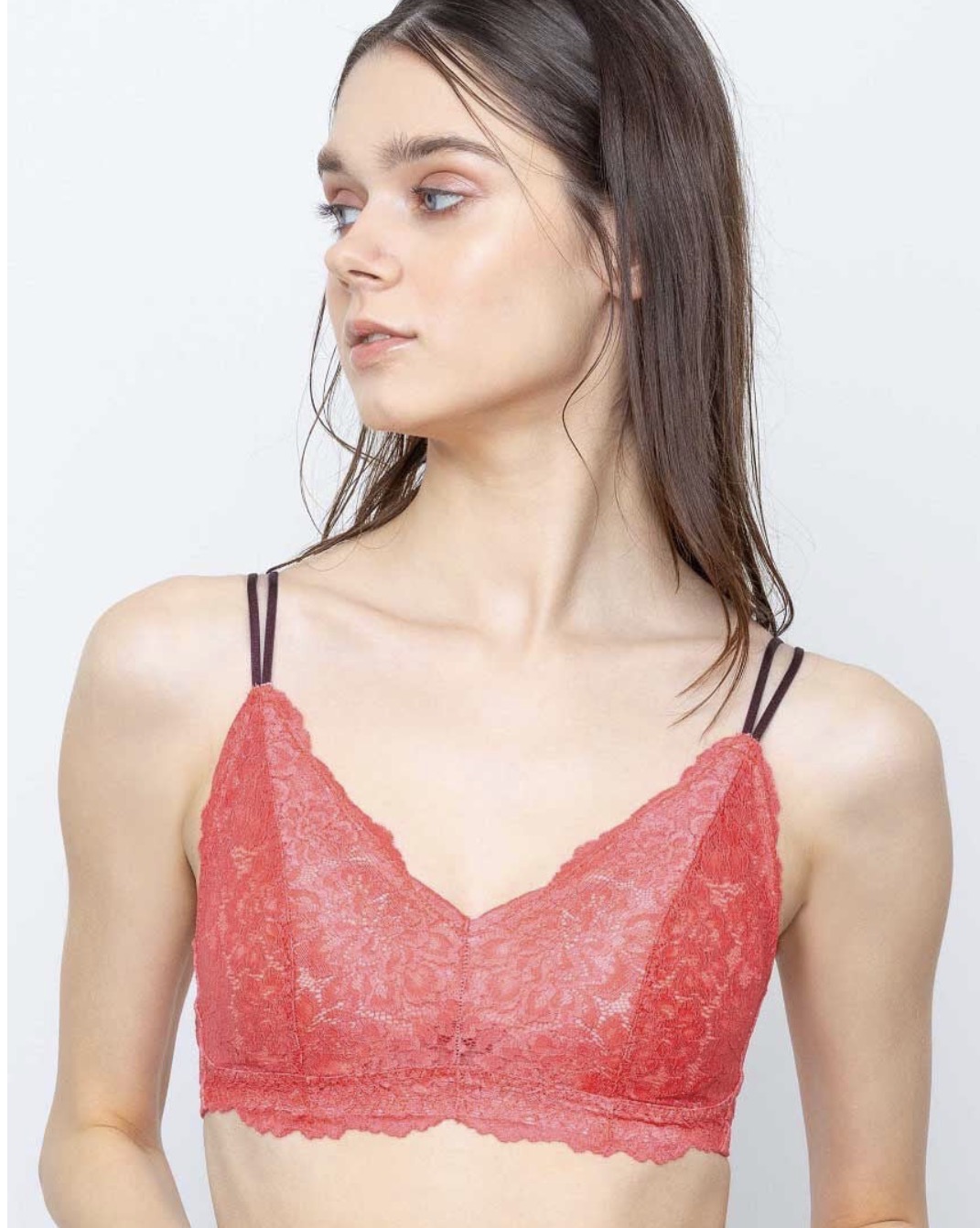 一款无钢圈文胸,具有自然贴合度和三维立体胸部silhouette,穿着舒适。