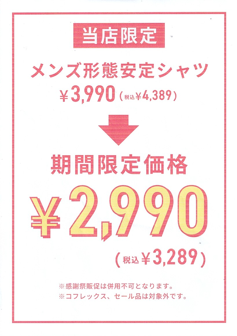 ・在收银台结账时,购买指定商品(包括售价 4,389 日元的防皱衬衫)可立减 1,100 日元!