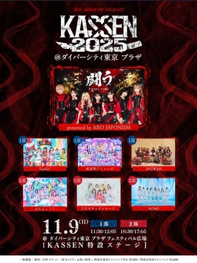 ![]() NEW “NEO JAPONISM PRESENTS KASSEN2025 @DiverCity Tokyo PLAZA ”将于11月9日星期日举行! 现场音乐 2025/10/31(金)~11/9(日)