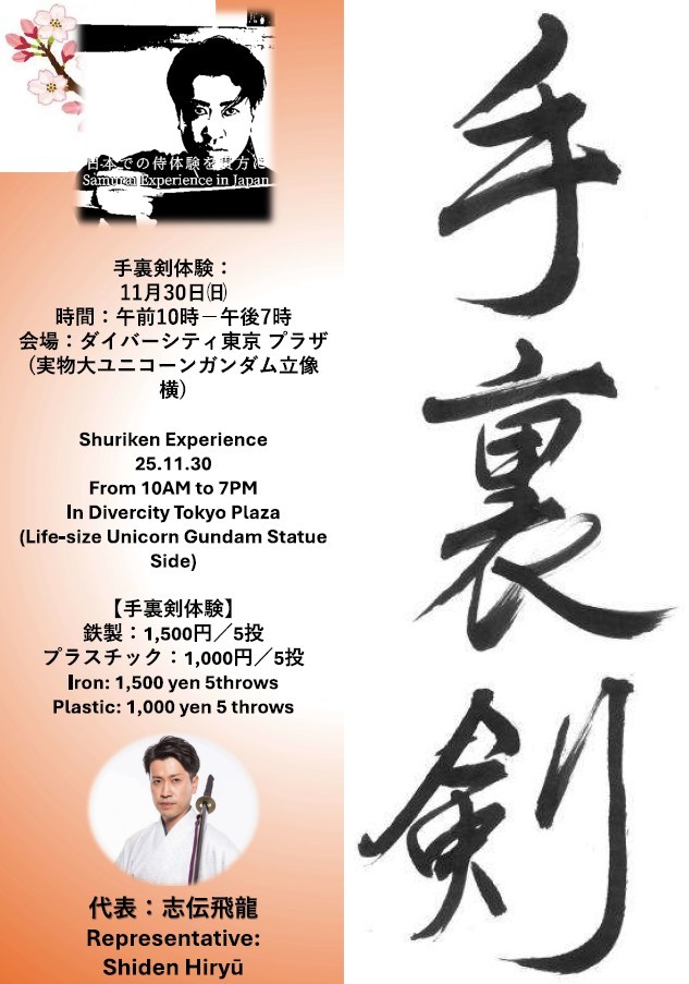 2F フェスティバル広場にて「手裏剣」体験会を開催いたします!