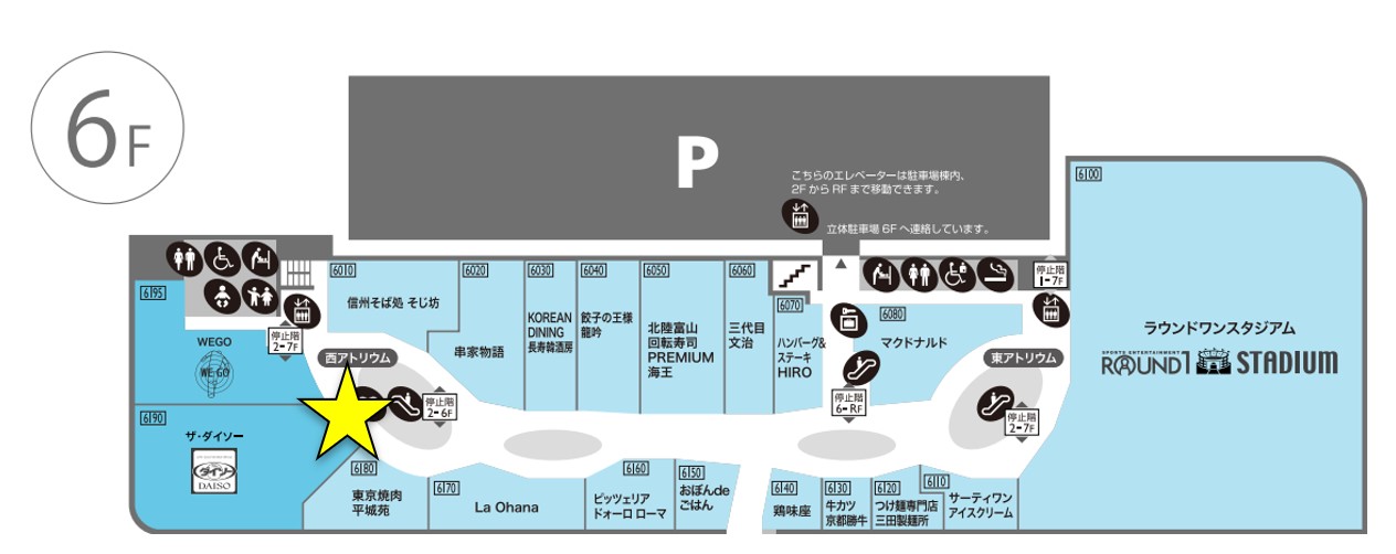 开门前,请前往 6 楼西中庭(The DAISO前)
