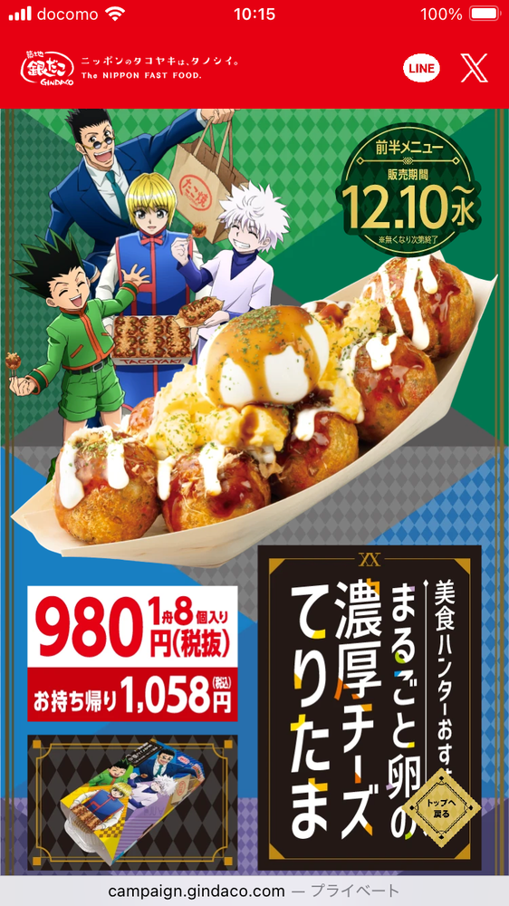 『築地銀だこ』×『HUNTER×HUNTER』コラボレーション実施中!! 築地銀だこ 12/09 更新