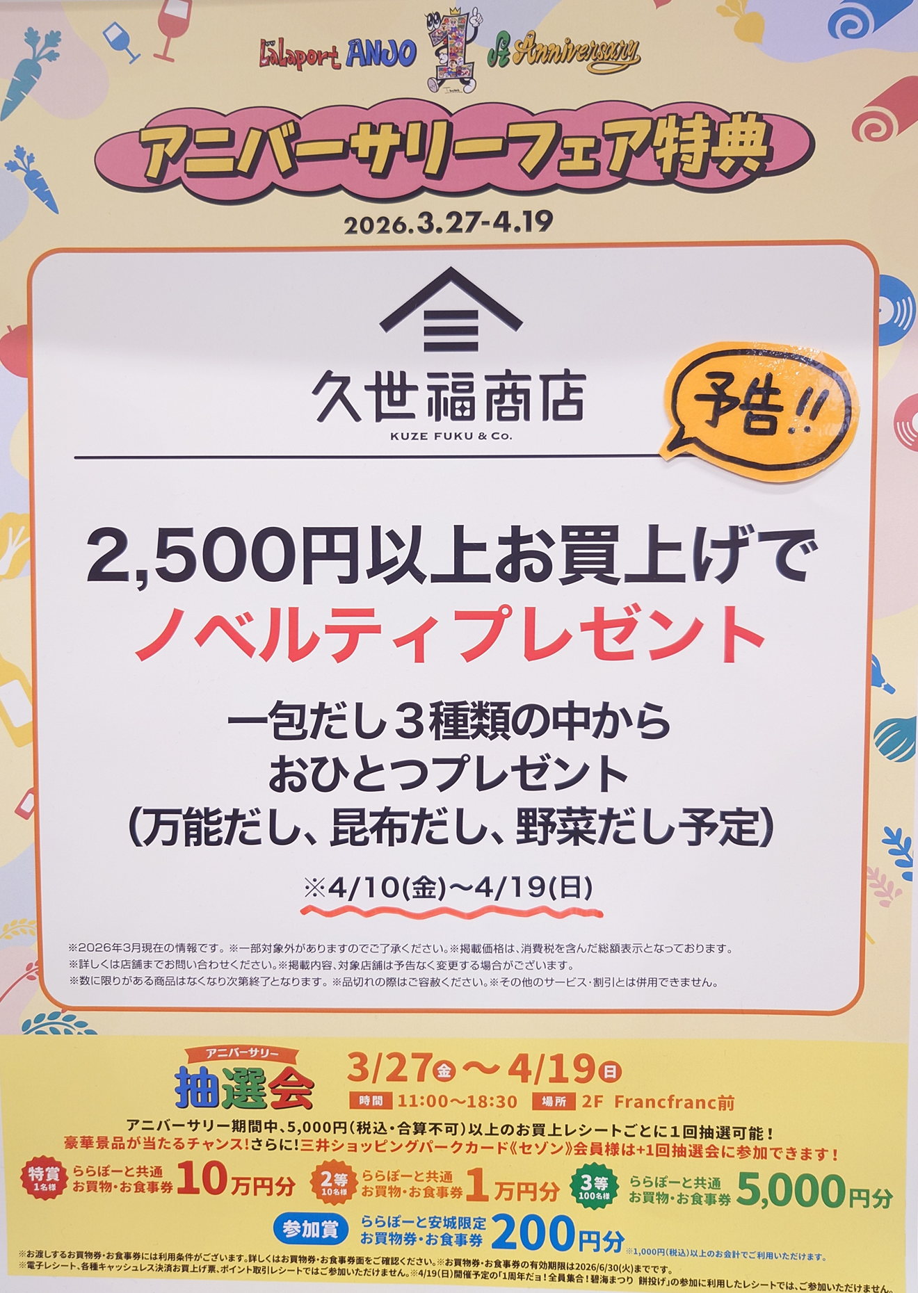 在此期间,欢迎光临KUZE FUKU & Co.福商店LaLaport ANJO店!