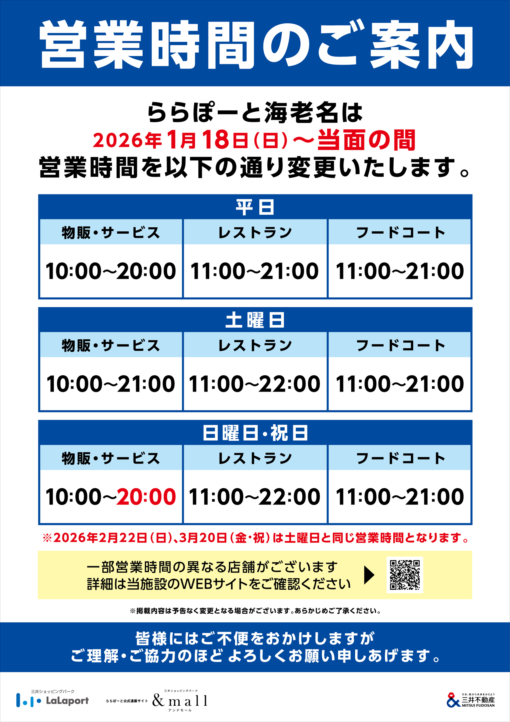 (3)星期日及公众假期(2026年2月22日星期日(星期日)及2026年3月20日星期五(假期)营业时间)