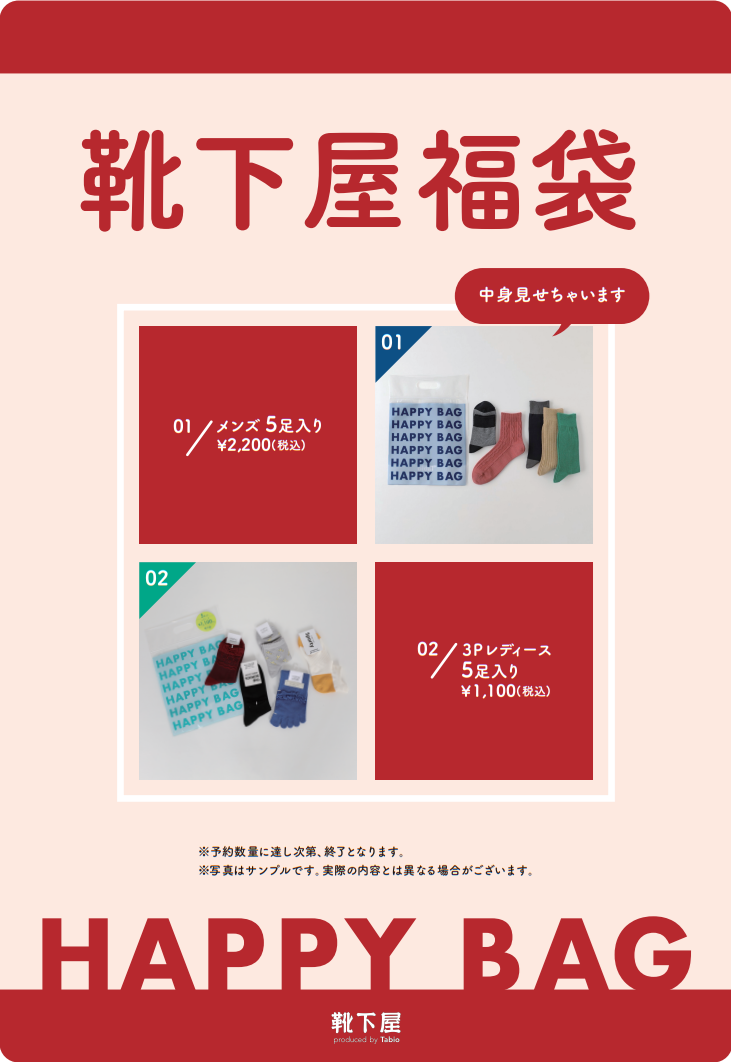 今年的超值“ KUTSUSHITAYA HAPPY BAG”将于2026年1月1日起发售。