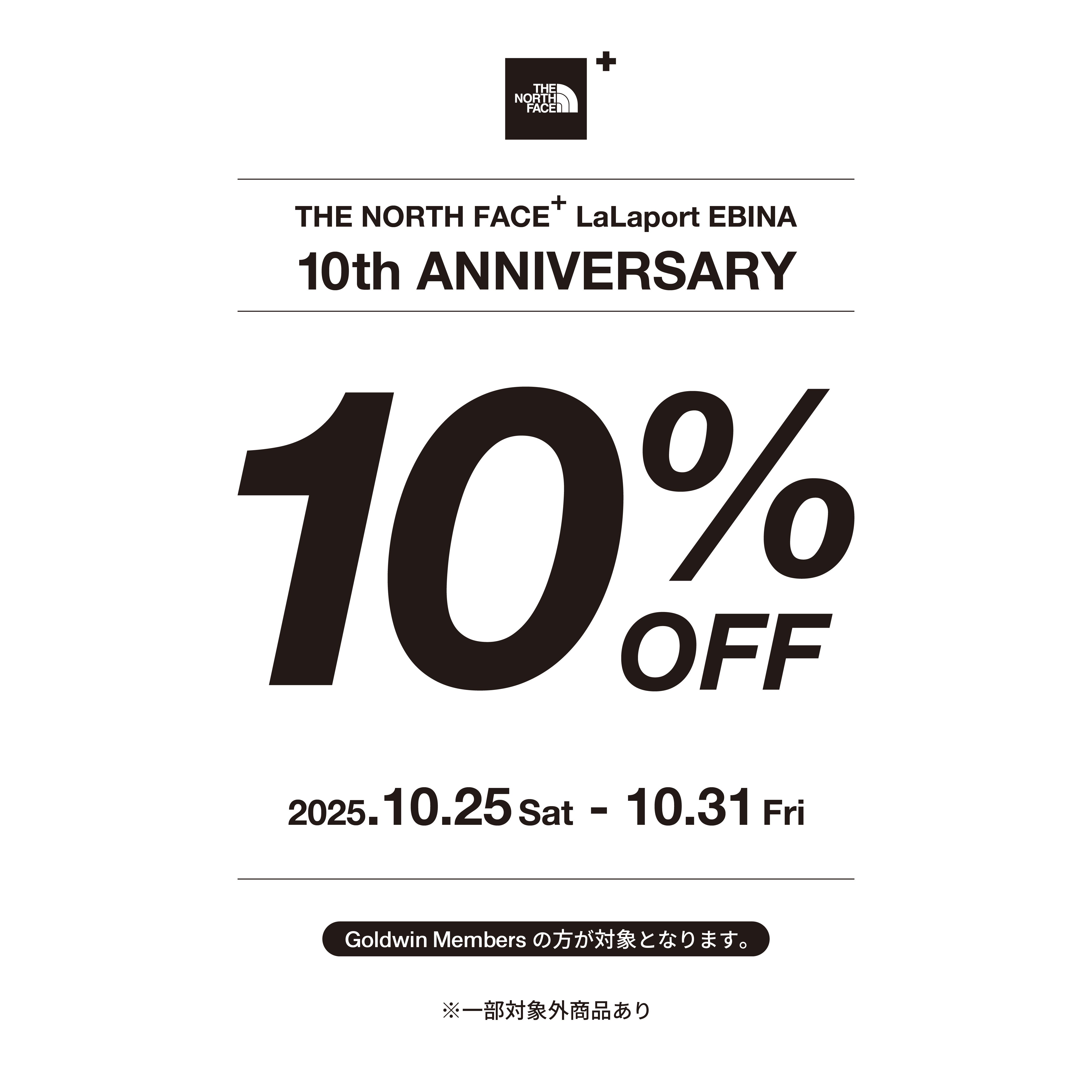- “THE NORTH FACE + 海老名店10周年纪念感谢祭” Goldwin会员10%折扣活动!