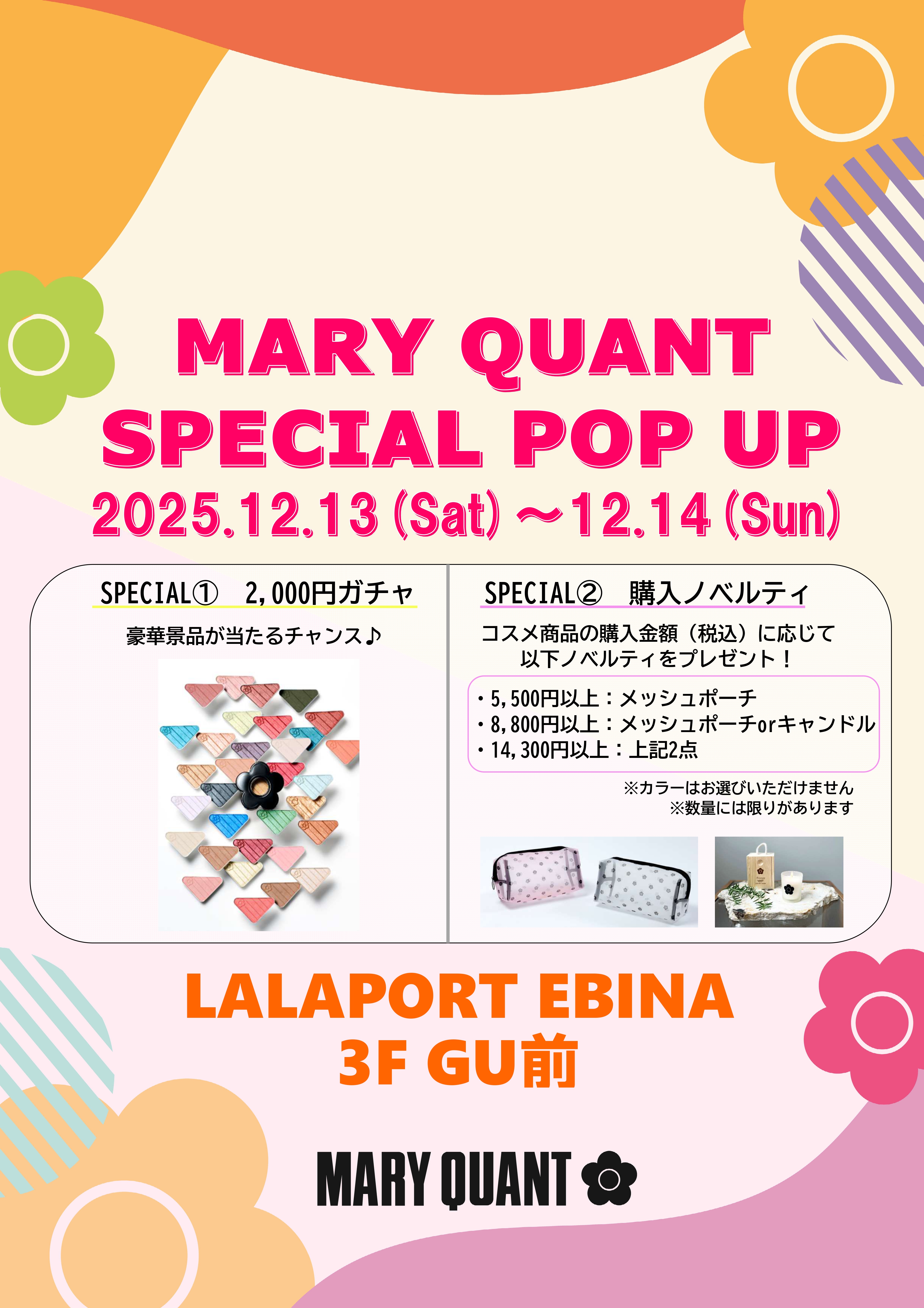 - 【MARY QUANT】12/13(土)~14(日) イベント開催!(3F GU前)