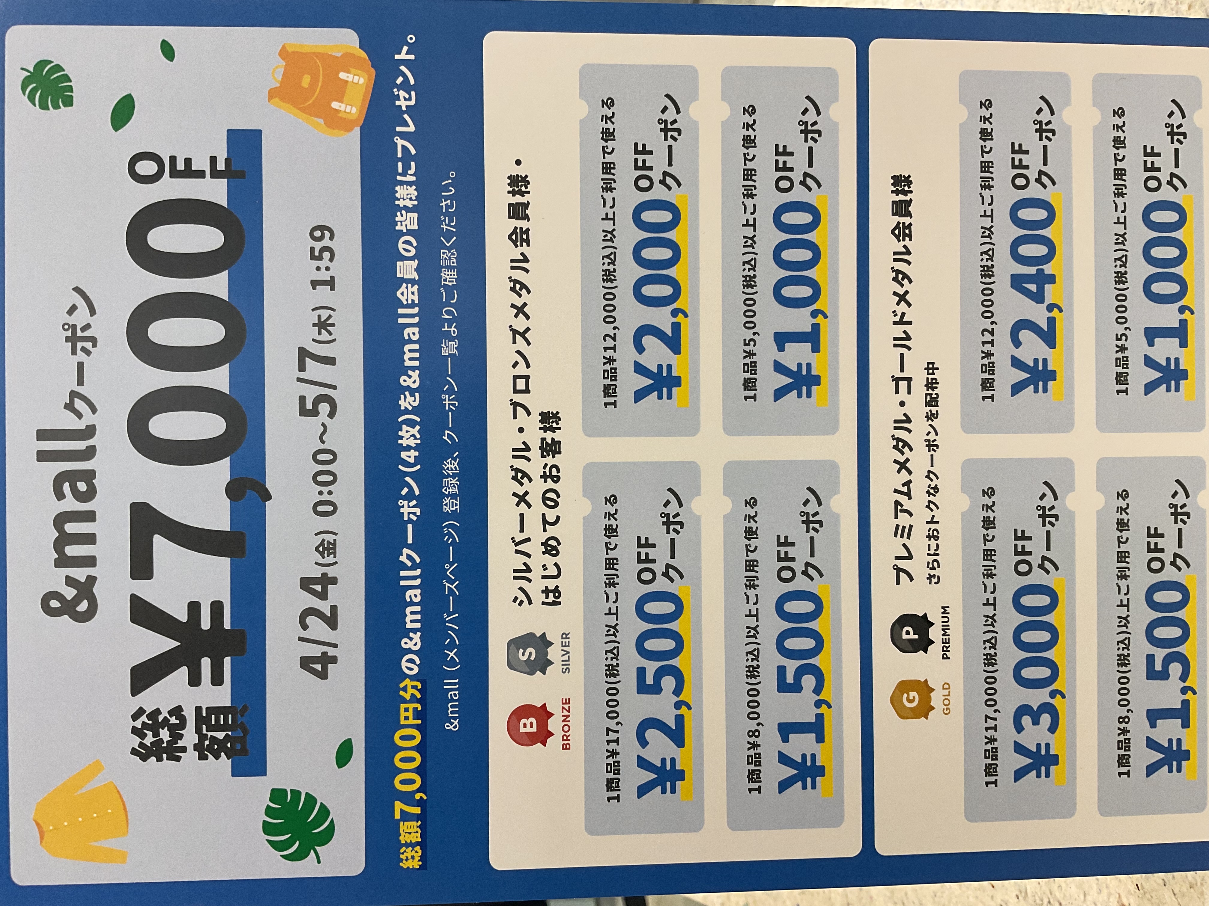 我们将向所有 &mall 会员赠送 4 张总价值 7,000 日元的 &mall 优惠券。