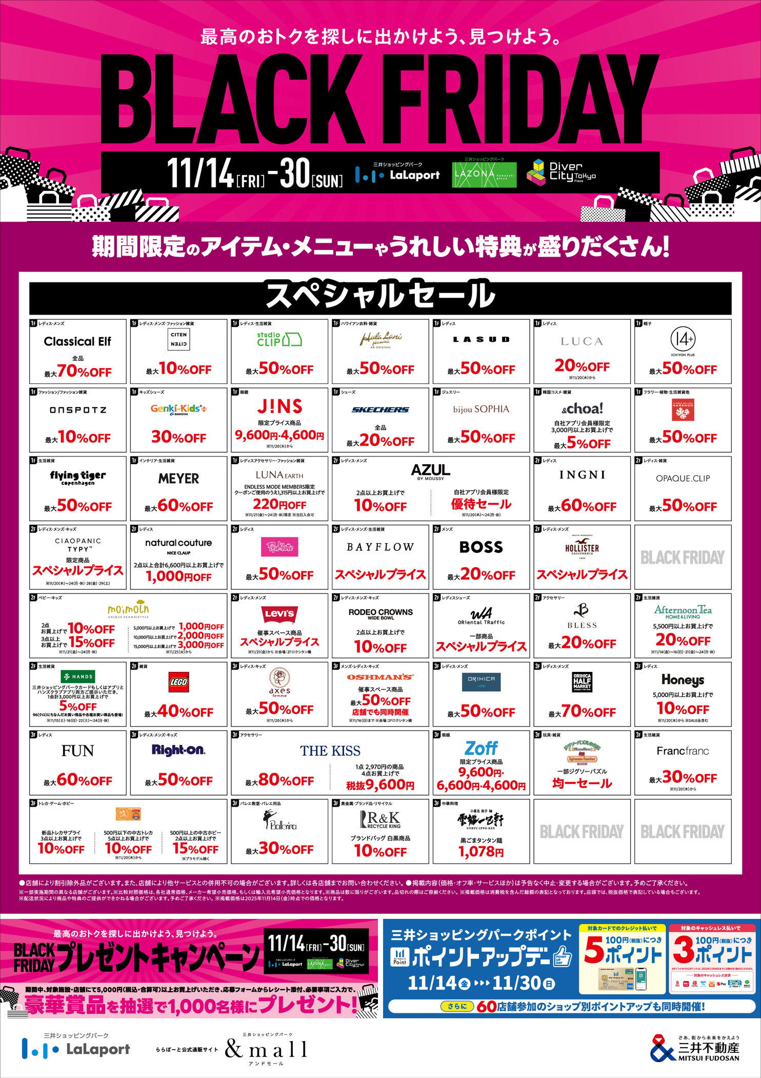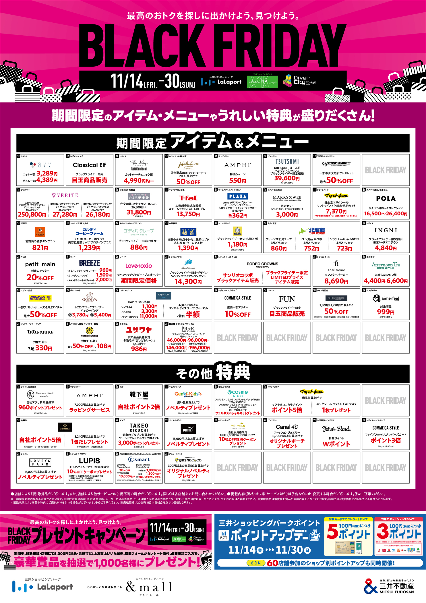 - 11/14 (周五) ~11/30 (周日) 举办三井购物公园积分升级日!