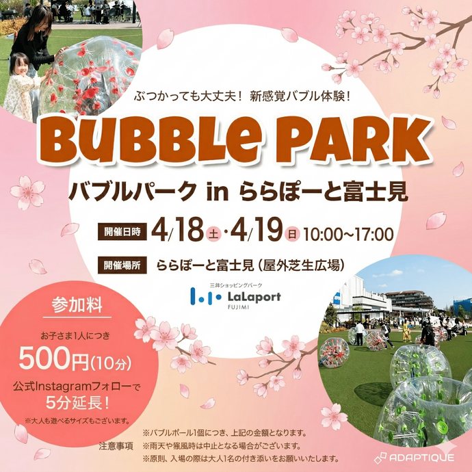 バブルボールで大はしゃぎ!新感覚バブル体験!!Bubble Park(バブルパーク) in ららぽーと富士見 開催!