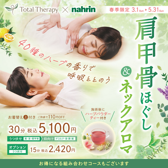 - 接近深层肌肉缓解酸痛,促进淋巴的流动。缓和肌肉的肿胀,对促进全身血液循环、恢复疲劳有效。也准备了期间限定的活动套餐!