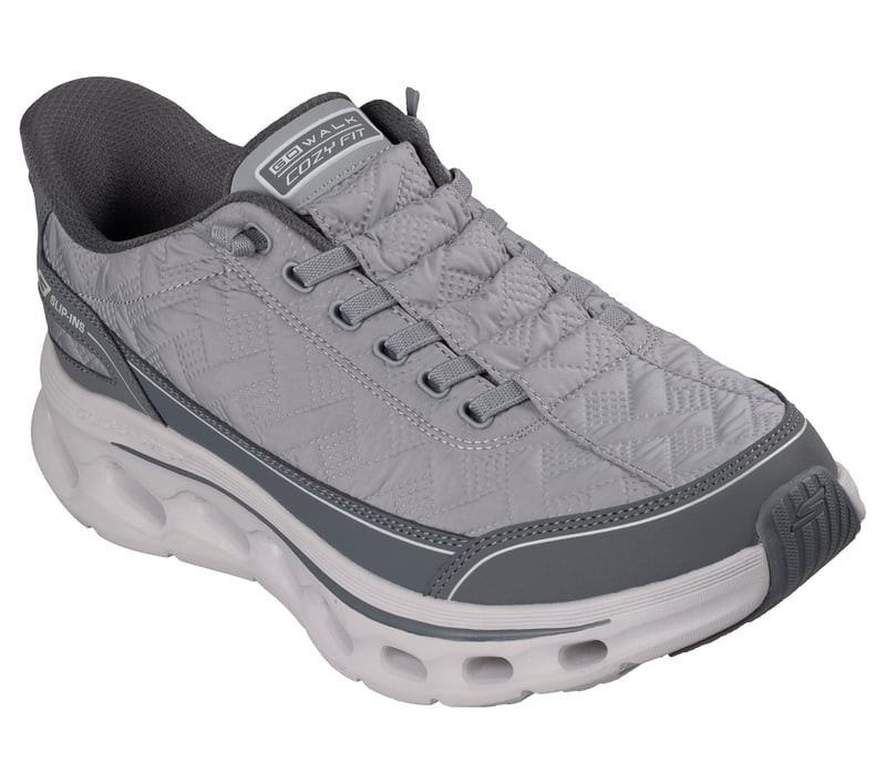 Cozy Fit™(コージーフィット)キルティングと合成素材のアッパーに、固定式ストレッチレースを配したスリップオンシューズ。通気性に優れたSkechers Air-Cooled Goga Mat™(スケッチャーズ エアクールドゴガマット)インソールと、クッション機能搭載の軽量のGlide-Step®(グライドステップ)ミッドソールを採用しています。
