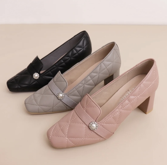 - 向您介绍一款心形铆钉方头高跟鞋。
