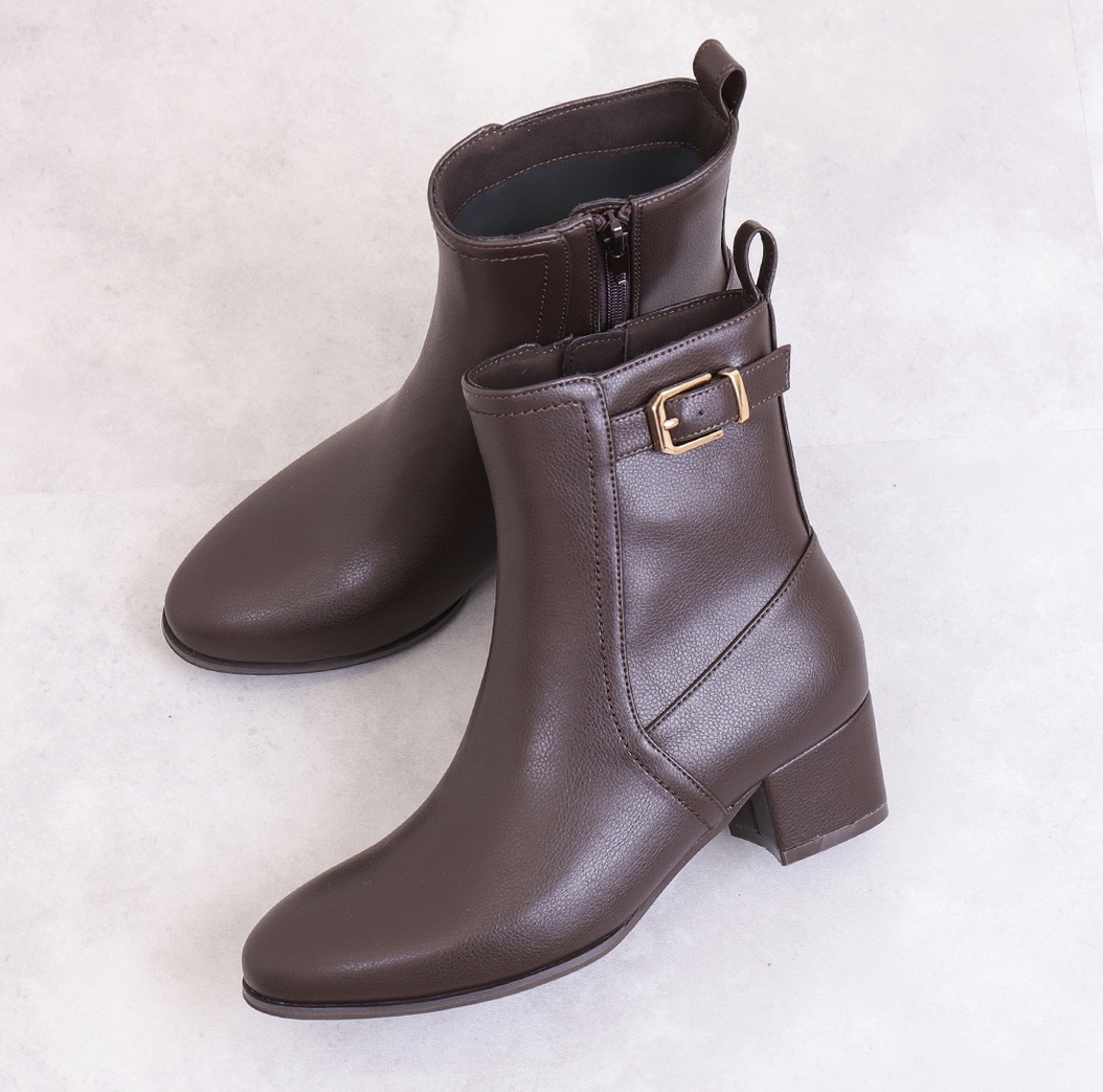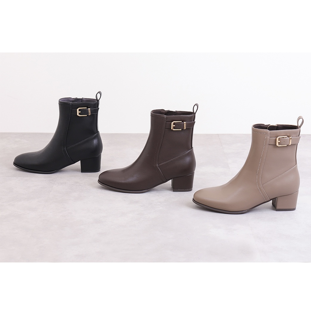 这款短靴鞋面饰有缝线,并配有精致的腰带设计。
