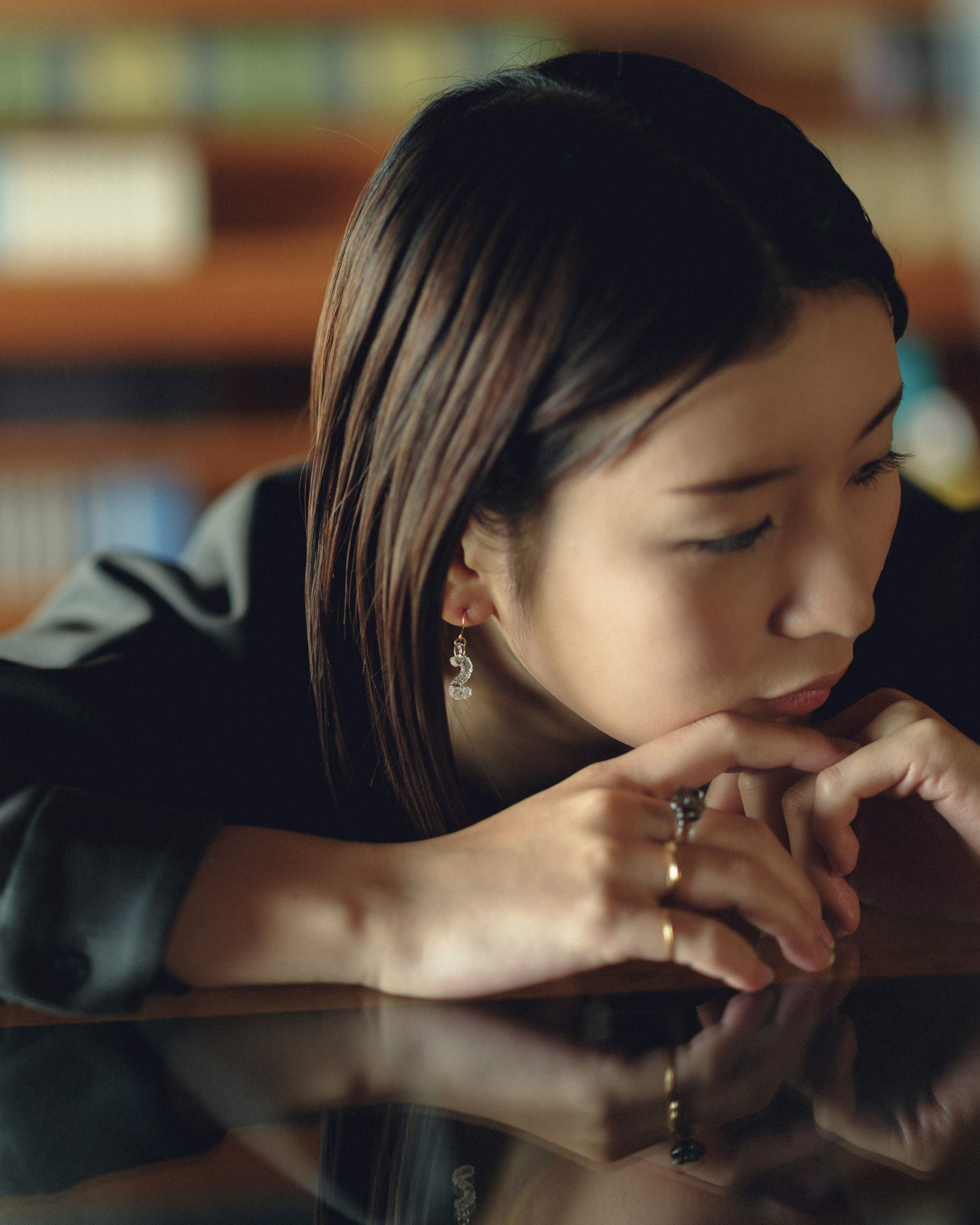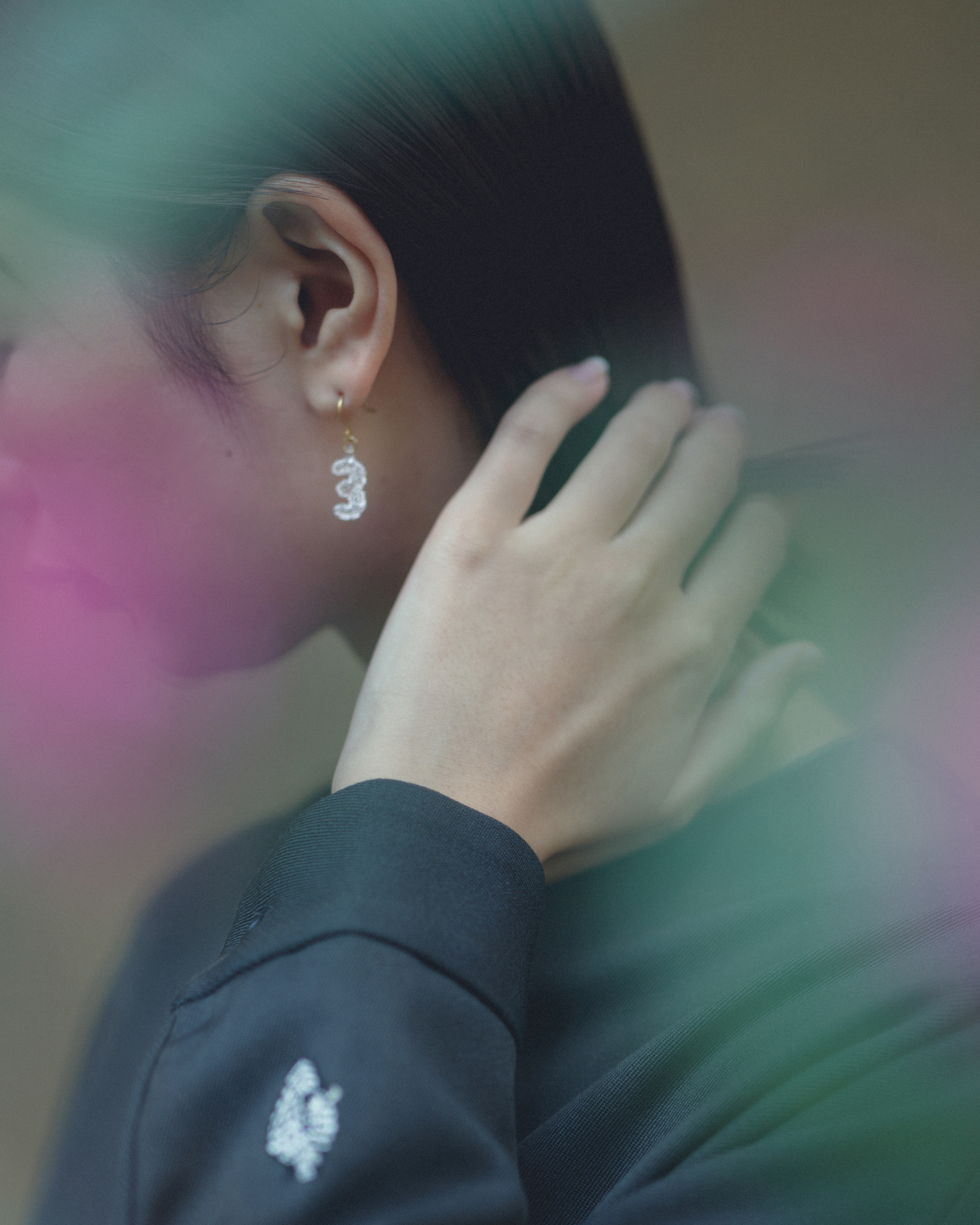 带有数字图案的耳环和项链是单独出售的。