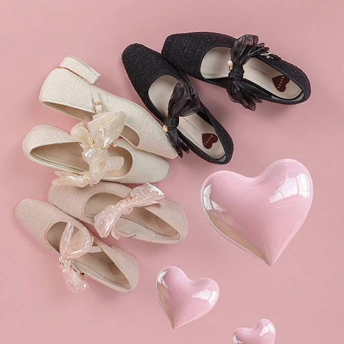 双向透明缎带心形平底鞋(产品编号:PP37131)