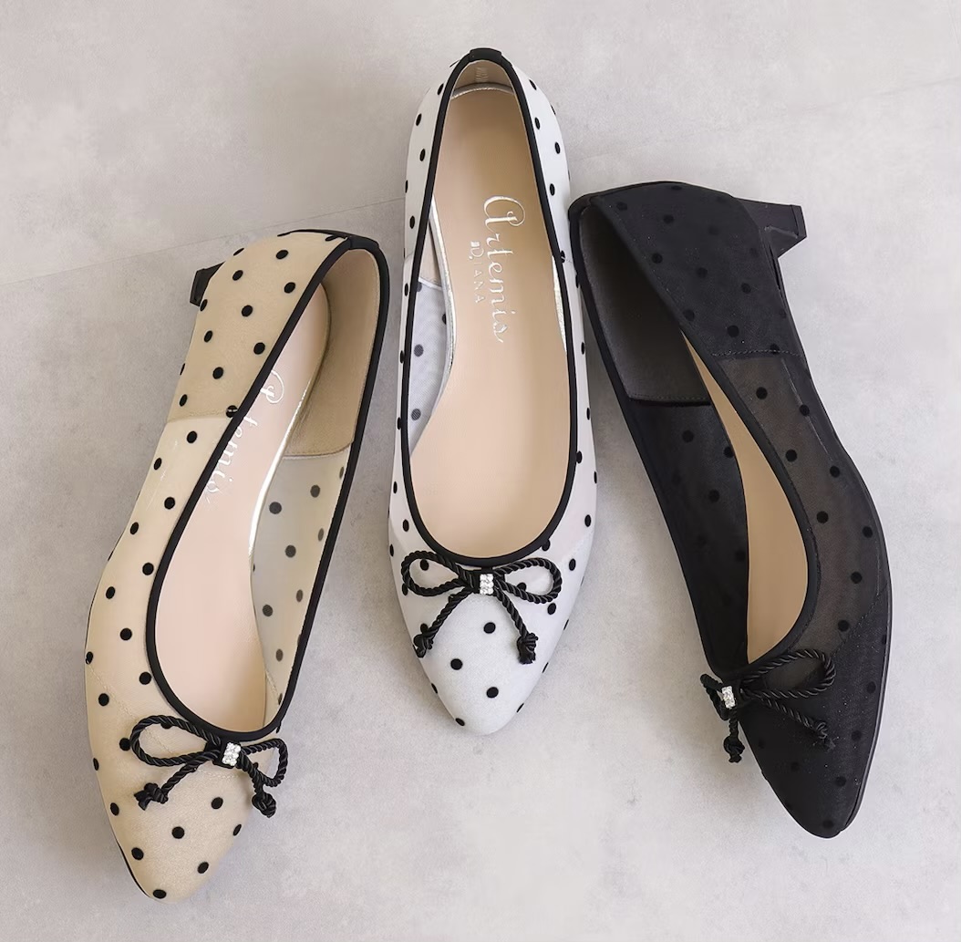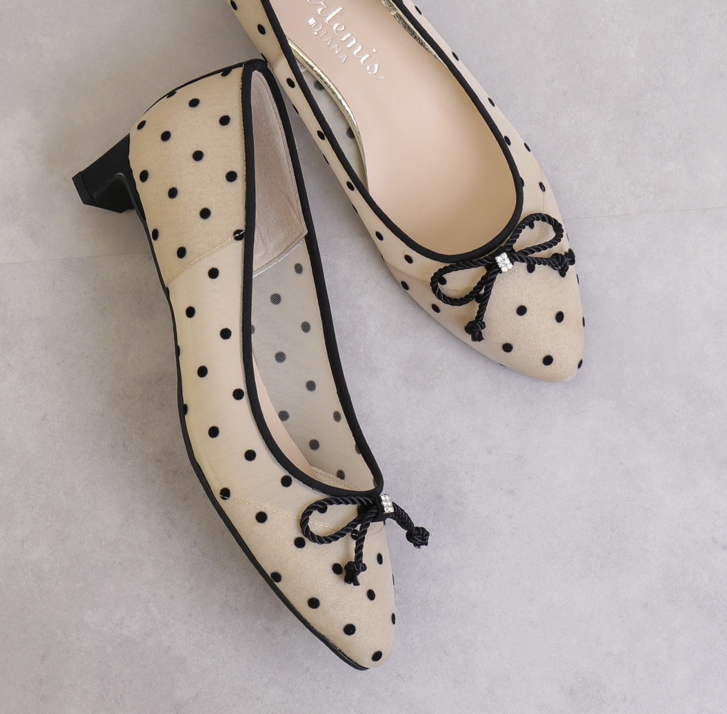 - リボンモチーフ ドットチュールパンプスのご紹介です