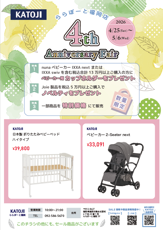 - 4月25日(周六)至5月6日(周三)LaLaport福冈4周年庆典
