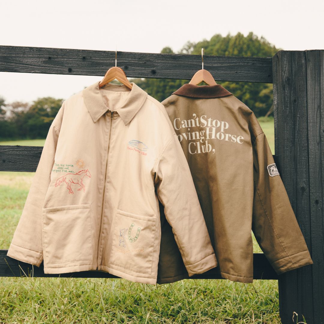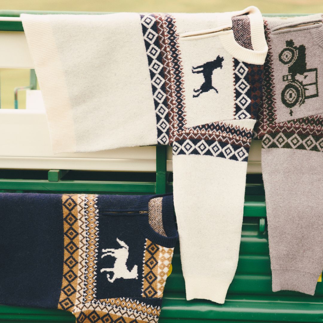 此次合作推出了一系列男士和时尚配饰,包括一件印有在NASU农场村实际拍摄的照片的卫衣、一件印有热门标志“Can't Stop Horse Club”的羽绒服、一件以提花针织工艺织有标志性拖拉机和动物图案的针织套头衫,以及与服装款式相匹配的针织帽,使之成为一个展现NASU农场村世界的特别系列。