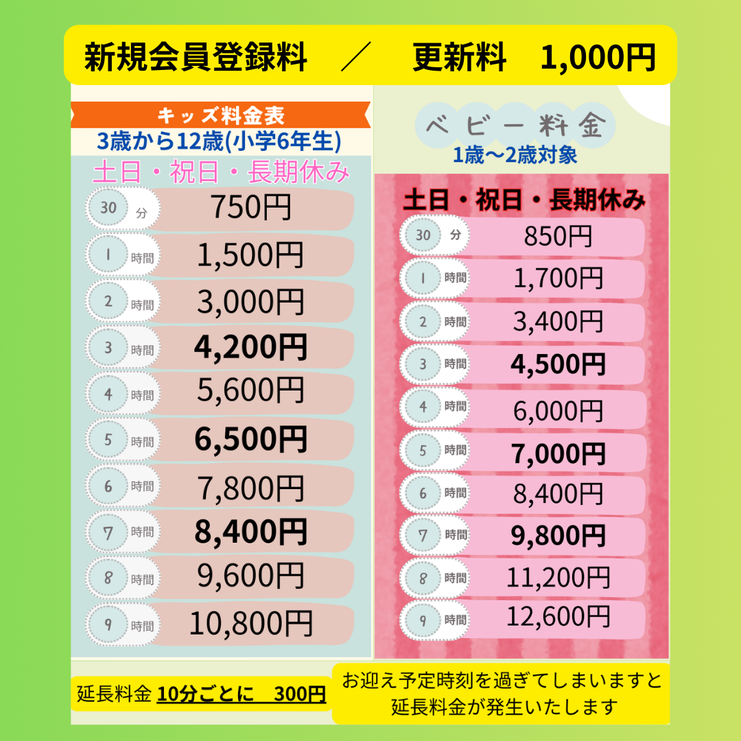 - 一時預かり料金表