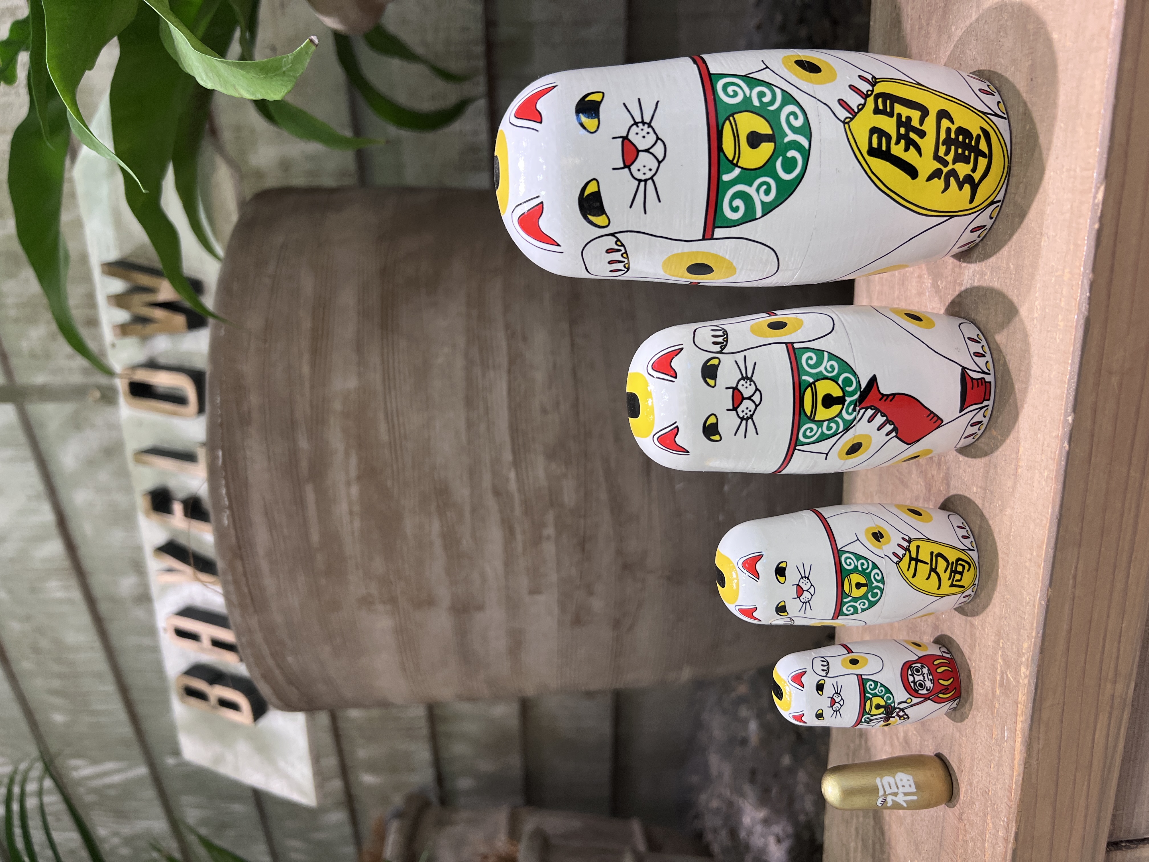 招き猫は、挙げている手で意味合いが変わり、右手はお金を、左手は人を招くとされています。5体横に並べる他にも右手左手を1ペアにして、2箇所に分けて飾るのもおすすめです★