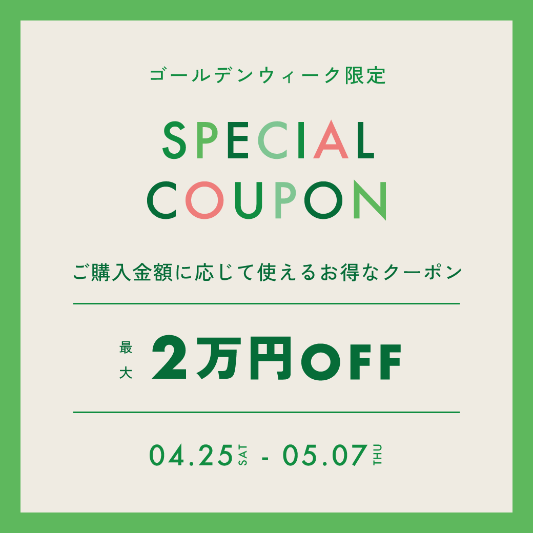 - \最大2万円OFF/ゴールデンウィークスペシャルクーポンプレゼント!