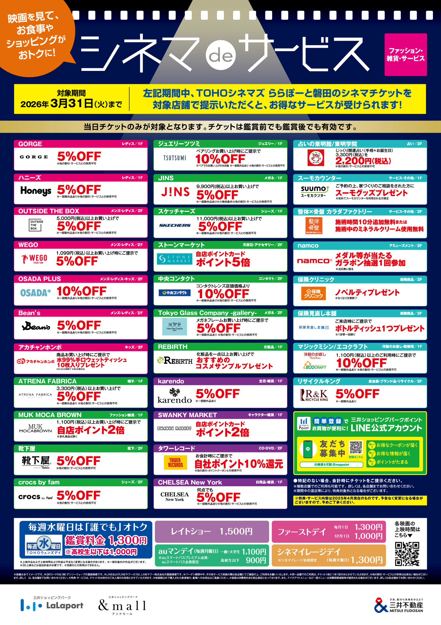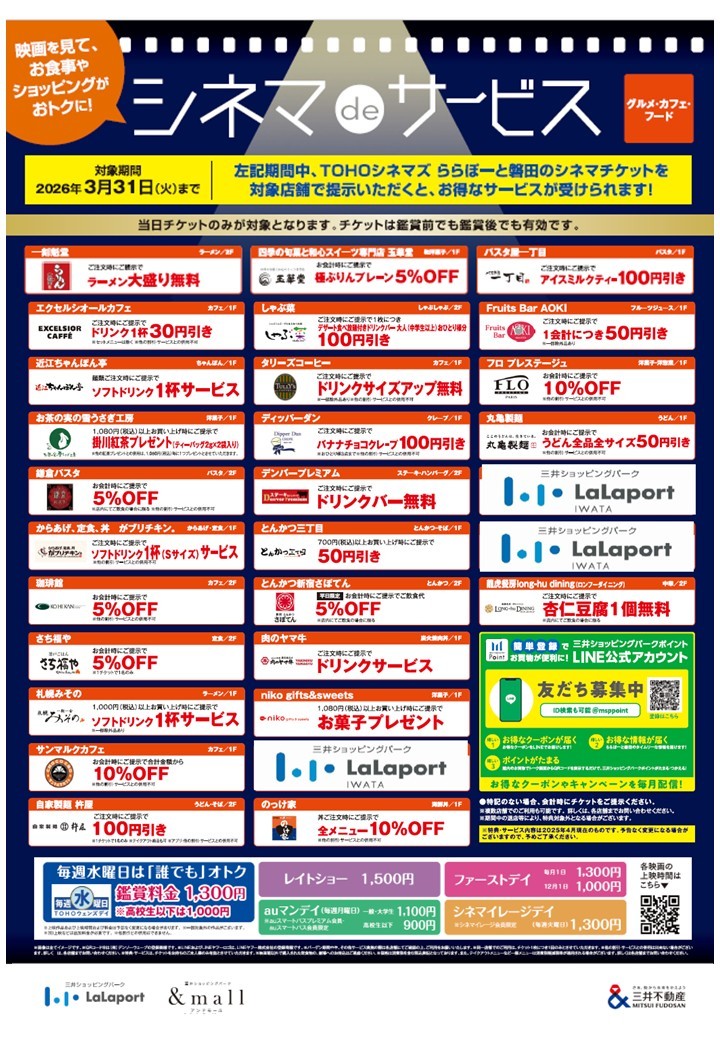 在参与活动的商店出示您的TOHO CINEMAS LaLaport磐田电影票即可享受特别服务!