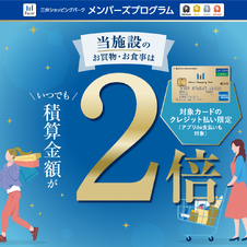 - 【対象カードのクレジット払い限定】当施設のお買物・お食事は積算金額がいつでも2倍!