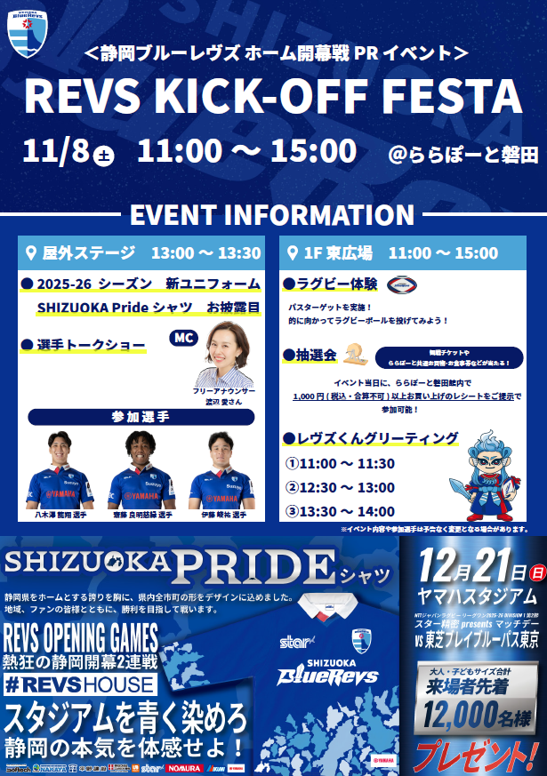 - 【11/8 (六) 】 静冈Blue Leves开幕战宣传活动