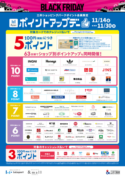 11/14 (周五) ~11/30 (周日) 举办三井购物公园积分升级日!