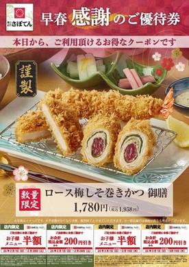 数量限定 ロース梅しそ巻きかつ御膳 販売スタート! お得なクーポン券配布中!!