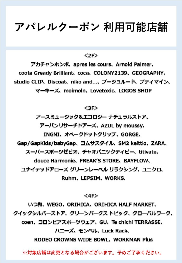 关于不能使用设施购物券的店铺