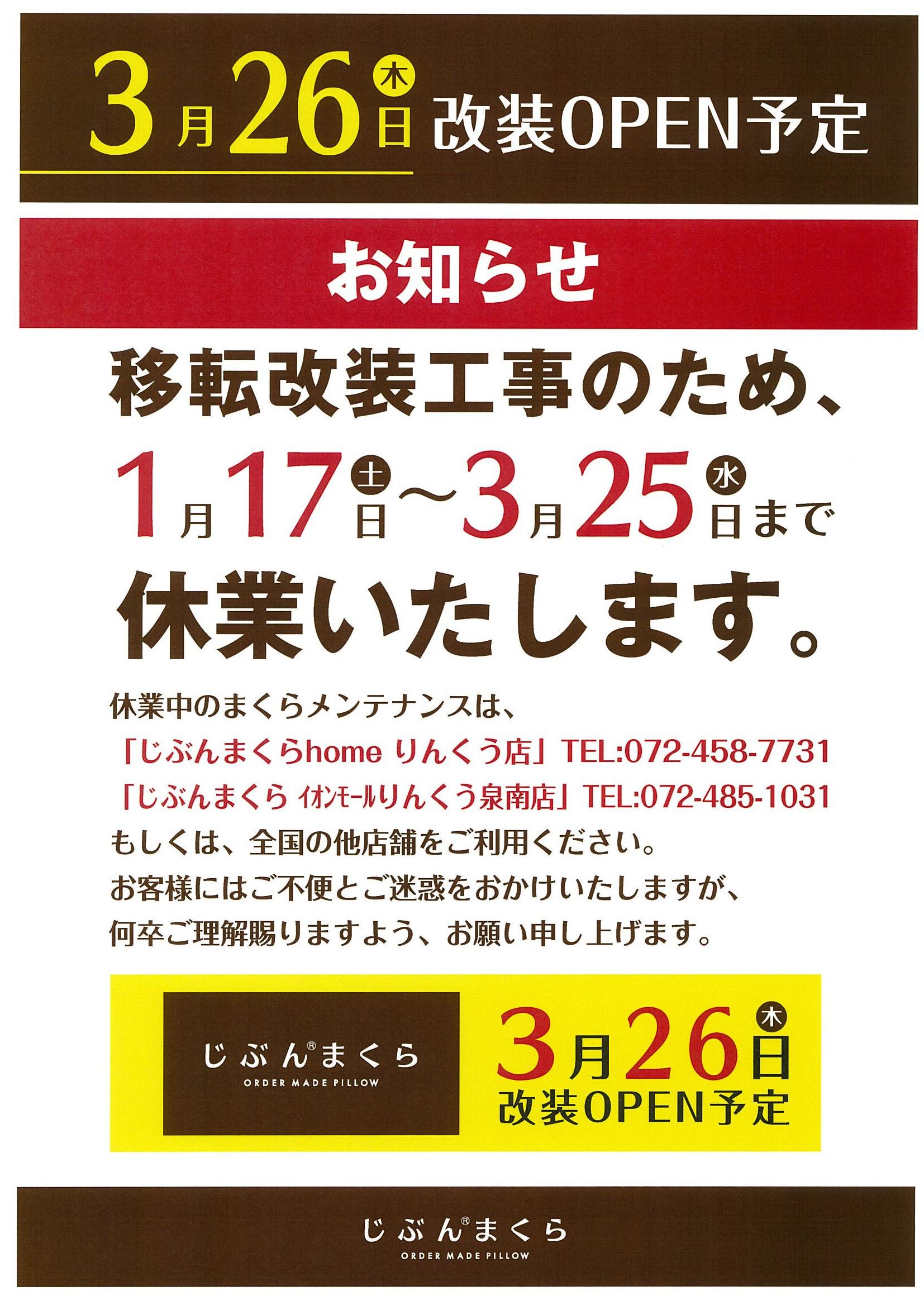 “JIBUNMAKURA Aeon Mall 临空仙南店”(072-485-1031 *遵循商场营业时间)
