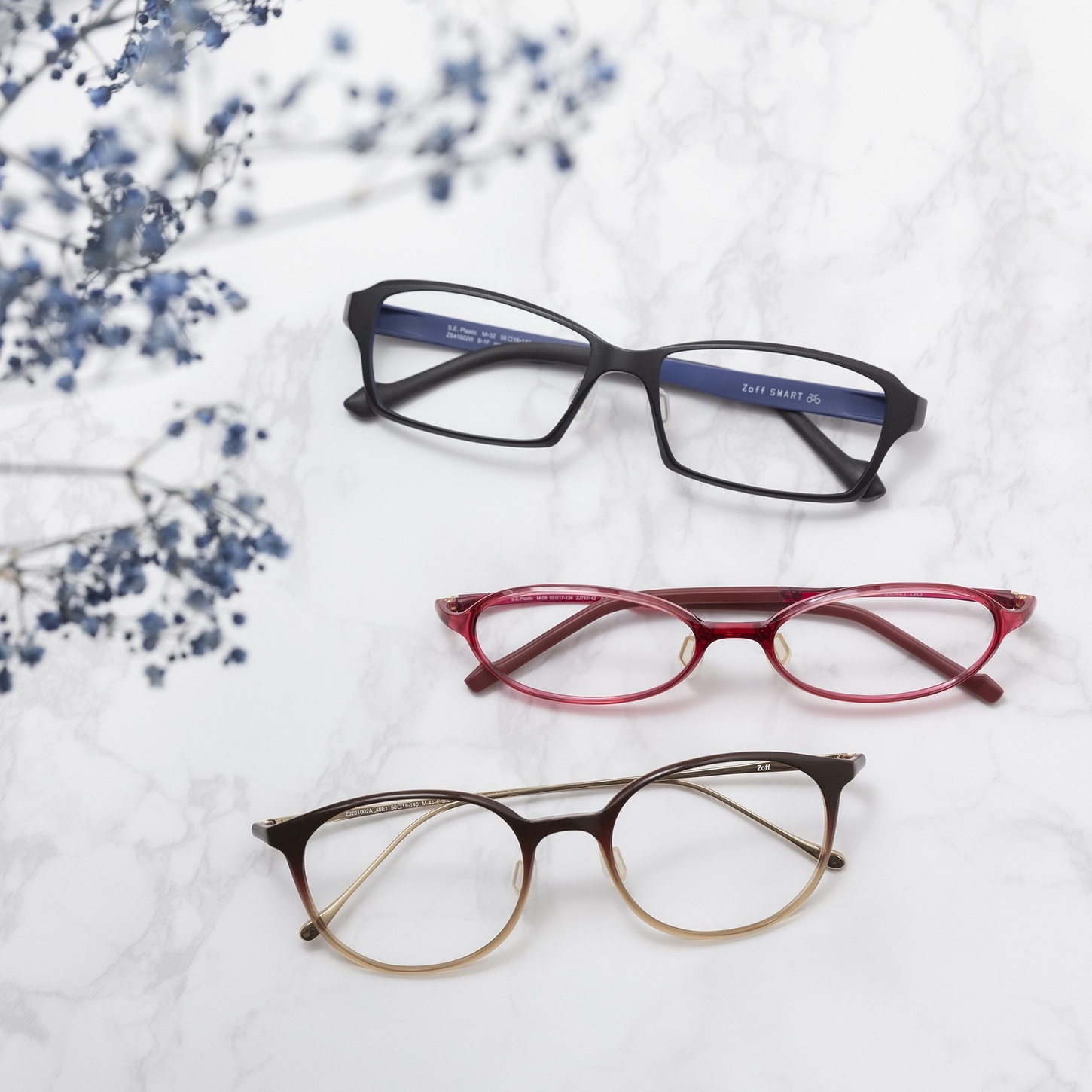 Zoff的镜框和镜片套装成品价格为 5,500 日元ZOFF。