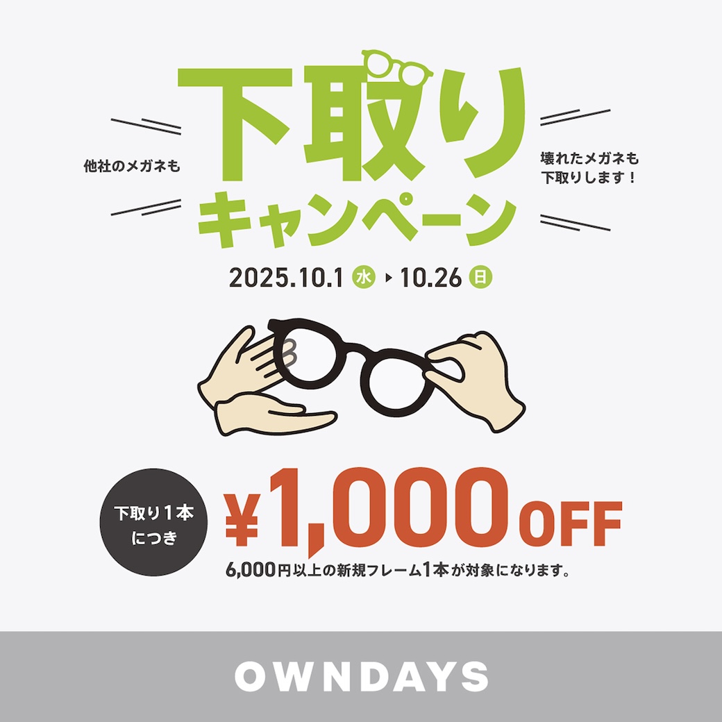 [OWNDAYS] 以旧换新活动:用其他品牌的眼镜进行以旧换新!即使眼镜破损也能享受 1000 日元优惠!