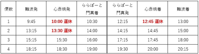 11月22日 (星期六) 9:00~14:00之间,因御堂筋实施交通管制上述车次在心斋桥巴士站不停车。