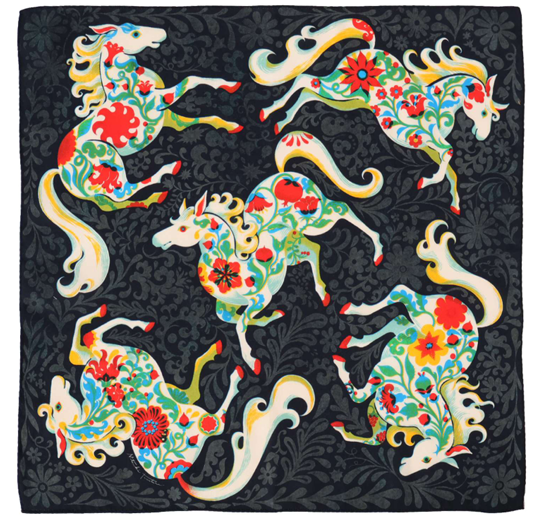 这款印有来年生肖马的图案的手帕时尚美观,可以当作手帕使用。
