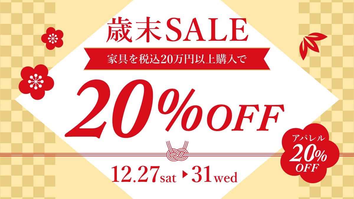 家具を税込 20万円以上ご購入いただいたお客様は 20%OFF と、