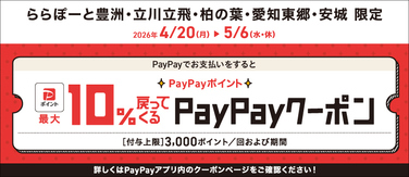 使用PayPay支付时,PayPay积分最多可返还10%的优惠券