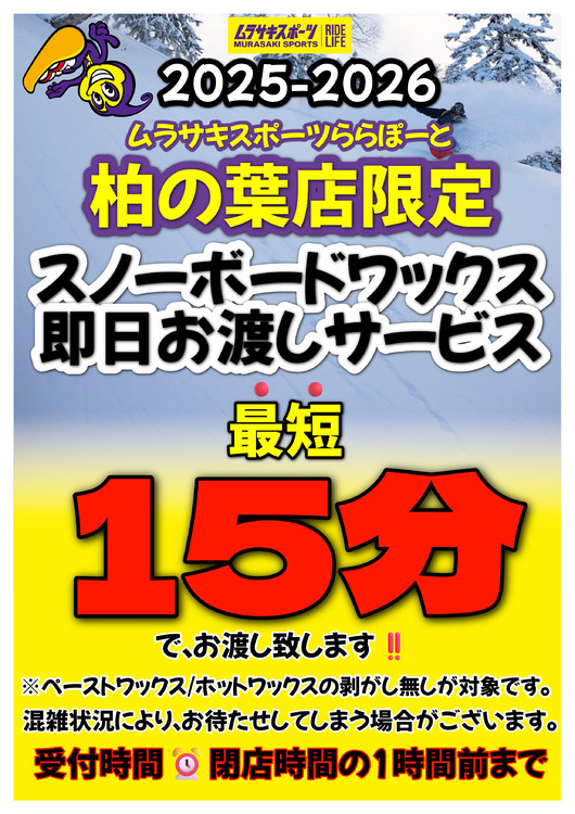 仅限柏之叶店!当日服务滑雪板蜡!! - MURASAKI SPORTS