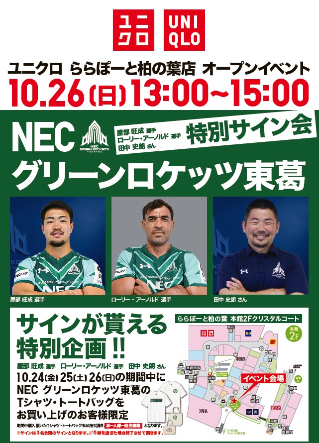 10/26 (周日) 公开活动举办NEC绿色火箭东葛选手的特别签名会!
