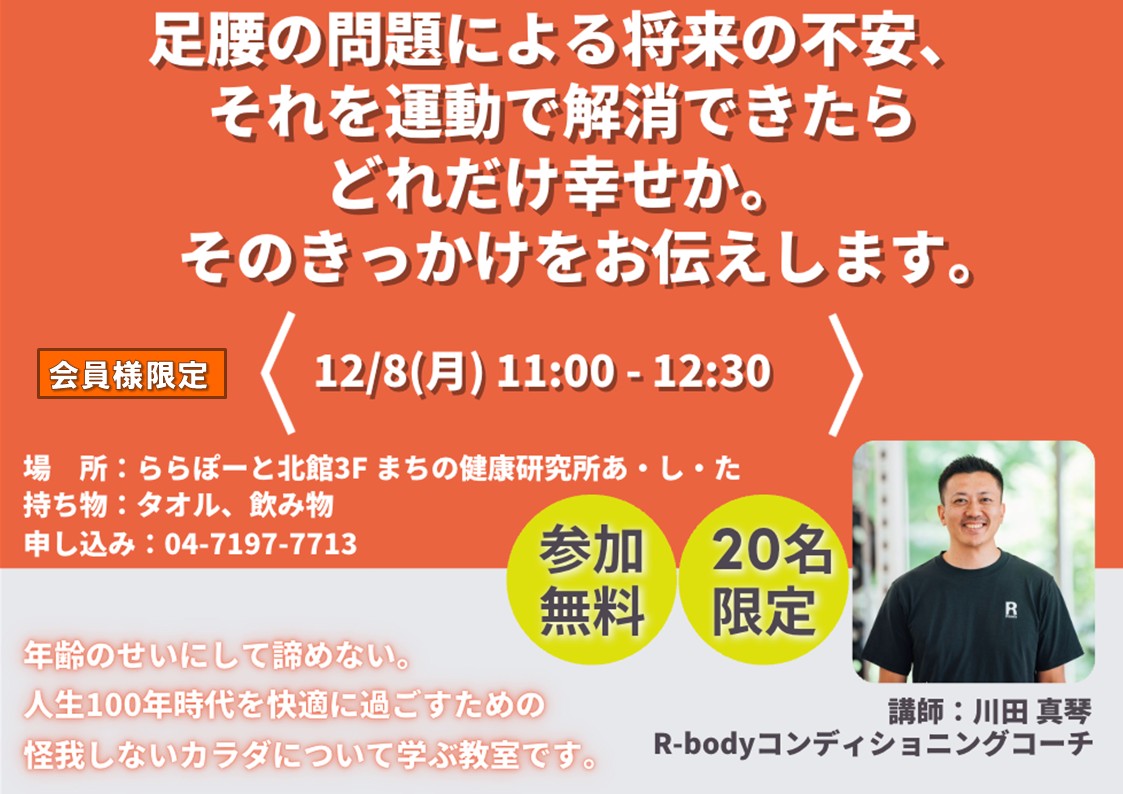 - 【仅限啊・田会员】 专业教练教授~如果能通过运动消除腰腿问题带来的将来的不安~ (免费)