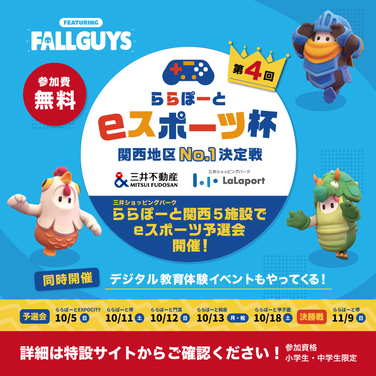 第4届LaLaport eSports Cup关西地区冠军预选赛即将举办~同时还将举办数码科技学习体验活动(免费)~