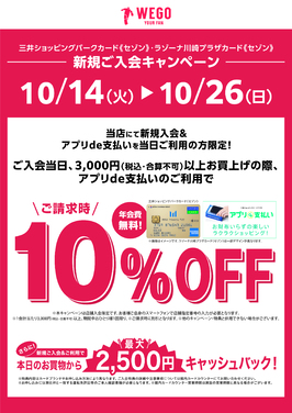 加入三井购物公园卡Saison,使用应用程序付款即可享受10%的折扣!
