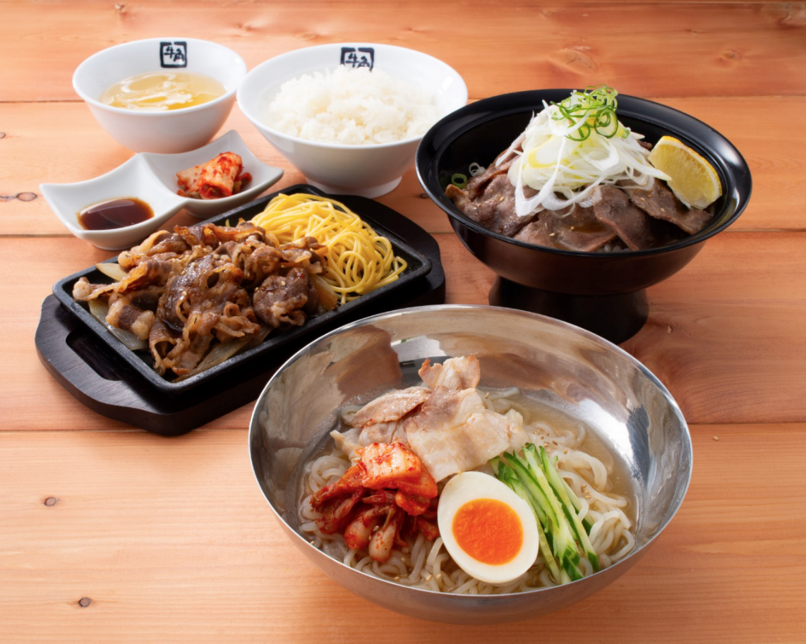 牛角制作的美食广场专卖店。下单后在店前的铁板上烤制,热腾腾的烤肉套餐和烤肉盖饭,在牛角也很受欢迎的冷面和石锅豆腐火锅等一应俱全。